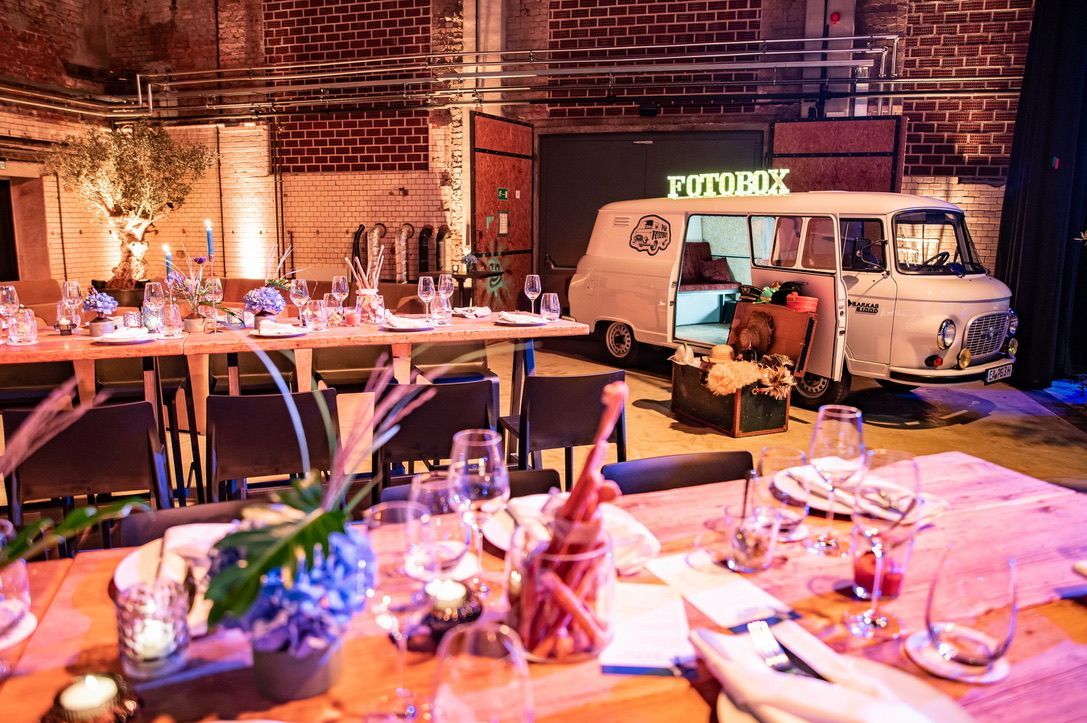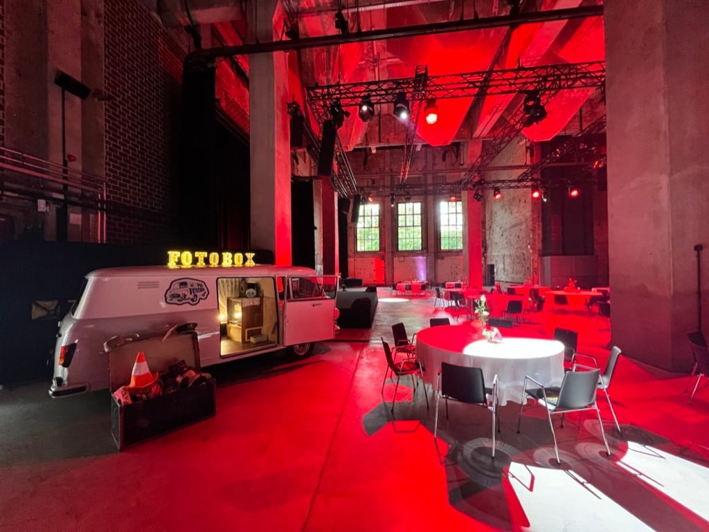 Die Verbindung aus nostalgischem Charme des Fotobusses und der industriellen Eleganz der Zentralheize schafft eine einzigartige Symbiose. Beide Elemente ergänzen sich perfekt und tragen dazu bei, dass Ihr Event einen bleibenden Eindruck hinterlässt. Außerdem bietet der großzügige Innenhof der Zentralheize den idealen Platz für den Fotobus, sodass er problemlos integriert werden kann.